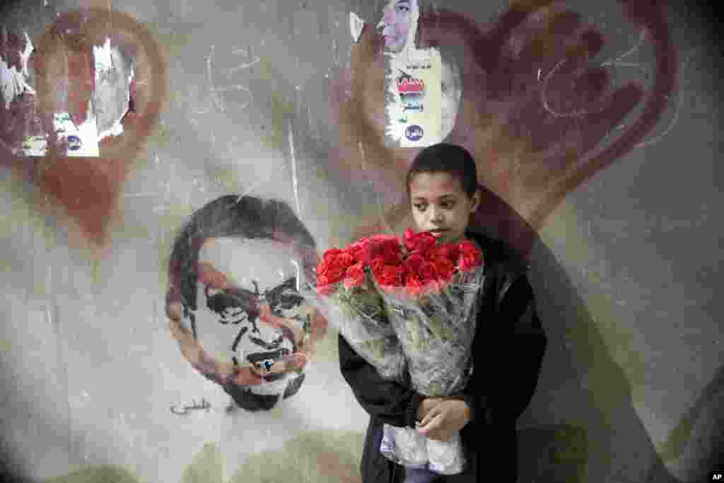 Grafiti u Egiptu: pored naslikanog Mubaraka i njegovih najbližih saradnika stoji natpis: "Nećeš od mene imati mira i nećeš više ijednog dana vladati mojim životom" AP/Amr Nabil