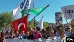 Oko dve hiljade muslimana okupilo se u Novom Pazaru posle današnje molitve, a zatim su izveli protestnu šetnju.
