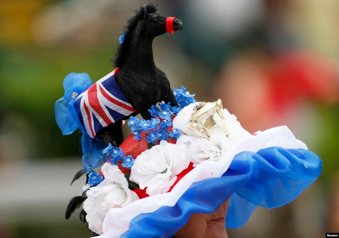 A lady wears a fanciful hat at the Britain Horse Race in Ascot, England.